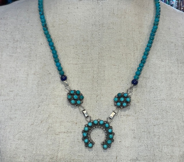 ターコイズ6mm玉ビーズ+ペンダントヘッド(ペルシャターコイズ) ラピスラズリ 56cm アジャスター付き
