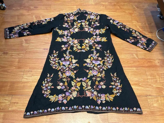 身幅 52cm 着丈98cm カシミール手刺繍ウール ヴィンテージ 裏地付き とても素晴らしい刺繍ですが、左袖に穴があります。 Original price ¥79000