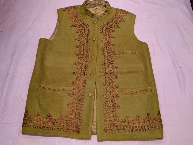 身幅 47cm 着丈68cm 比較的薄手のウール生地に手刺繍されています 前はボタンなどはありません