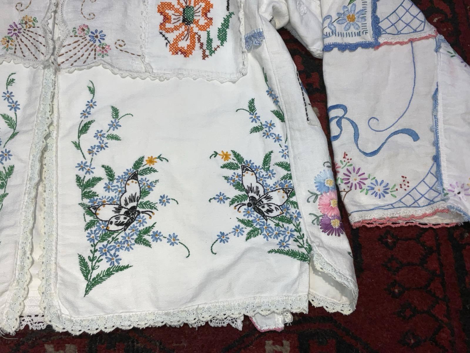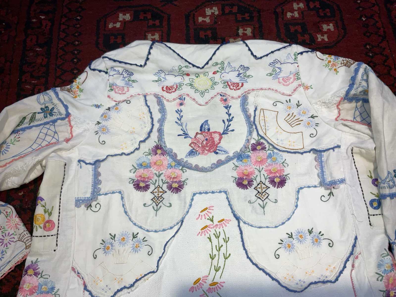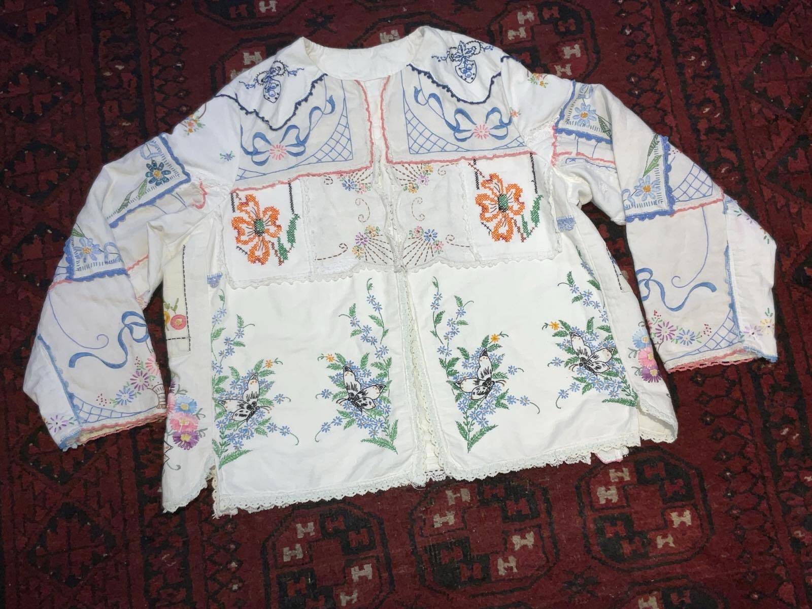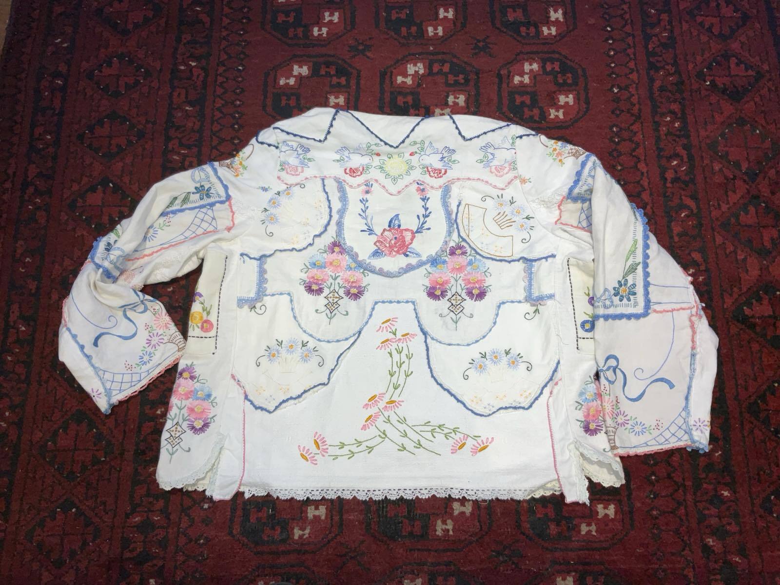 表生地はコットンやリネンの様々なヴィンテージ手刺繍をパッチワークしたものです。