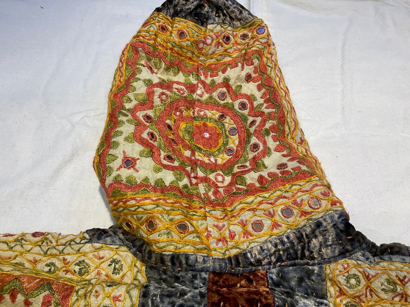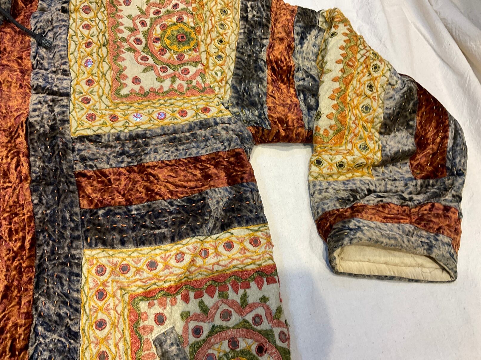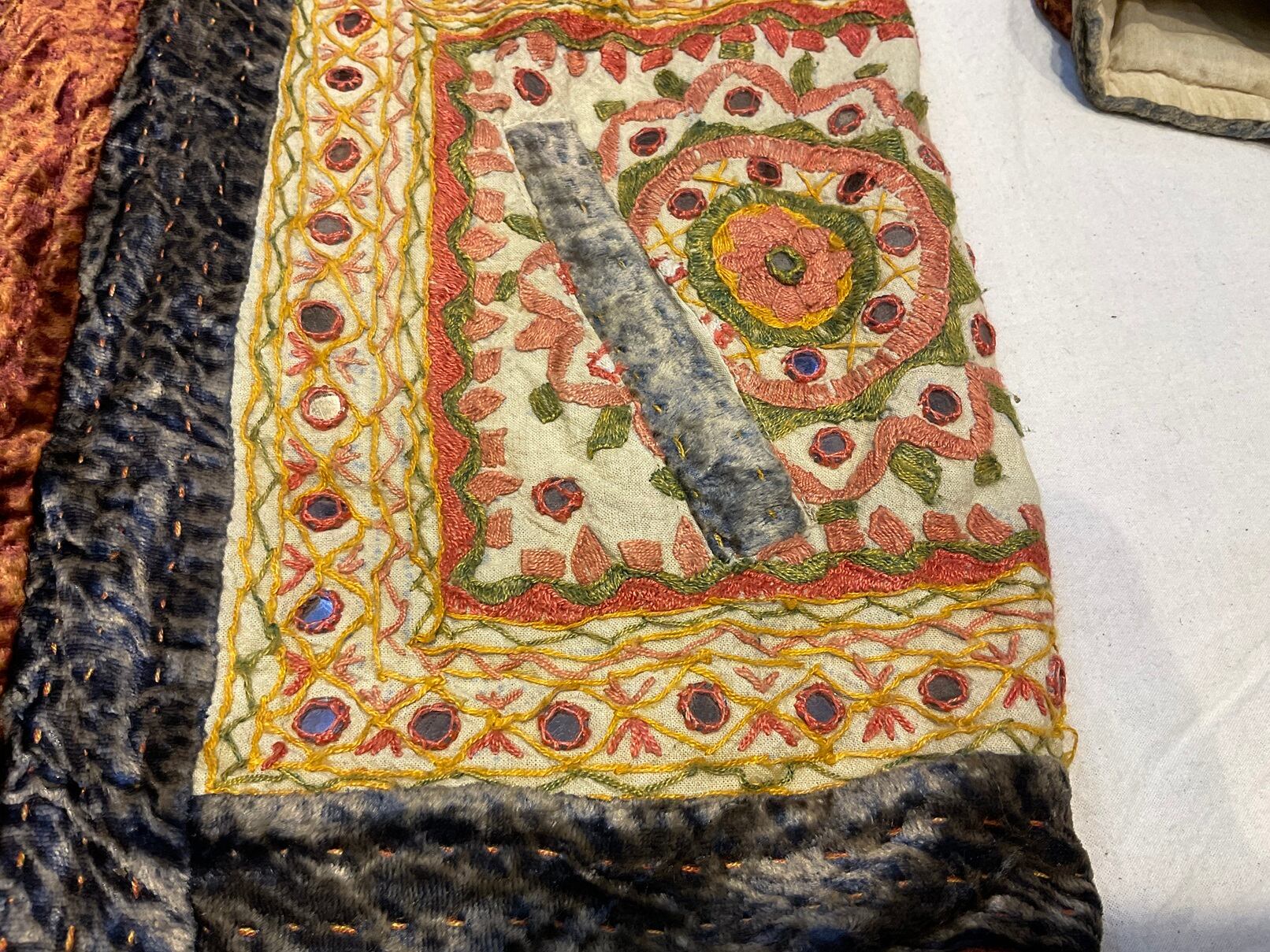 ベルベット地に四角い手刺繍がアップリケされています。