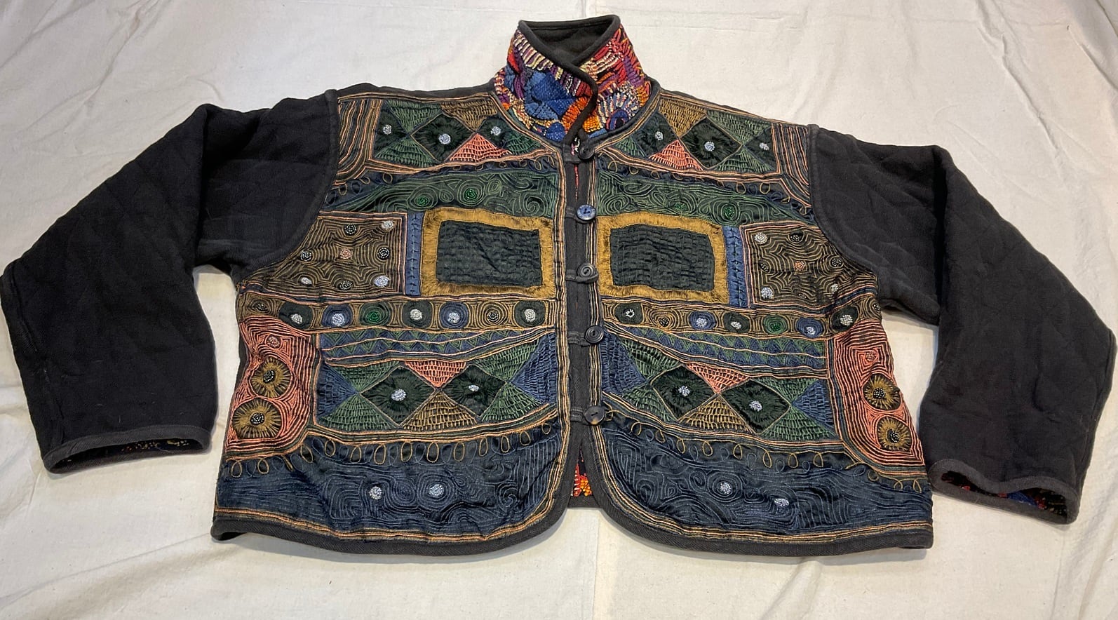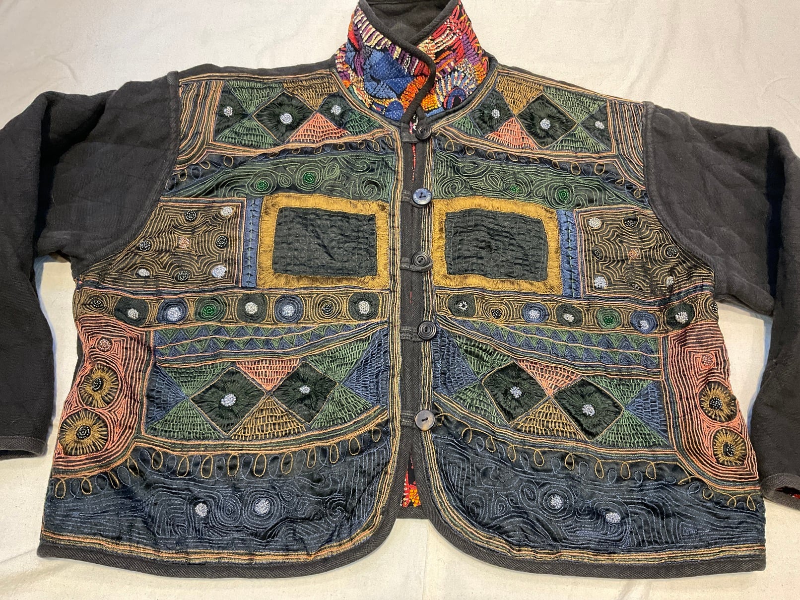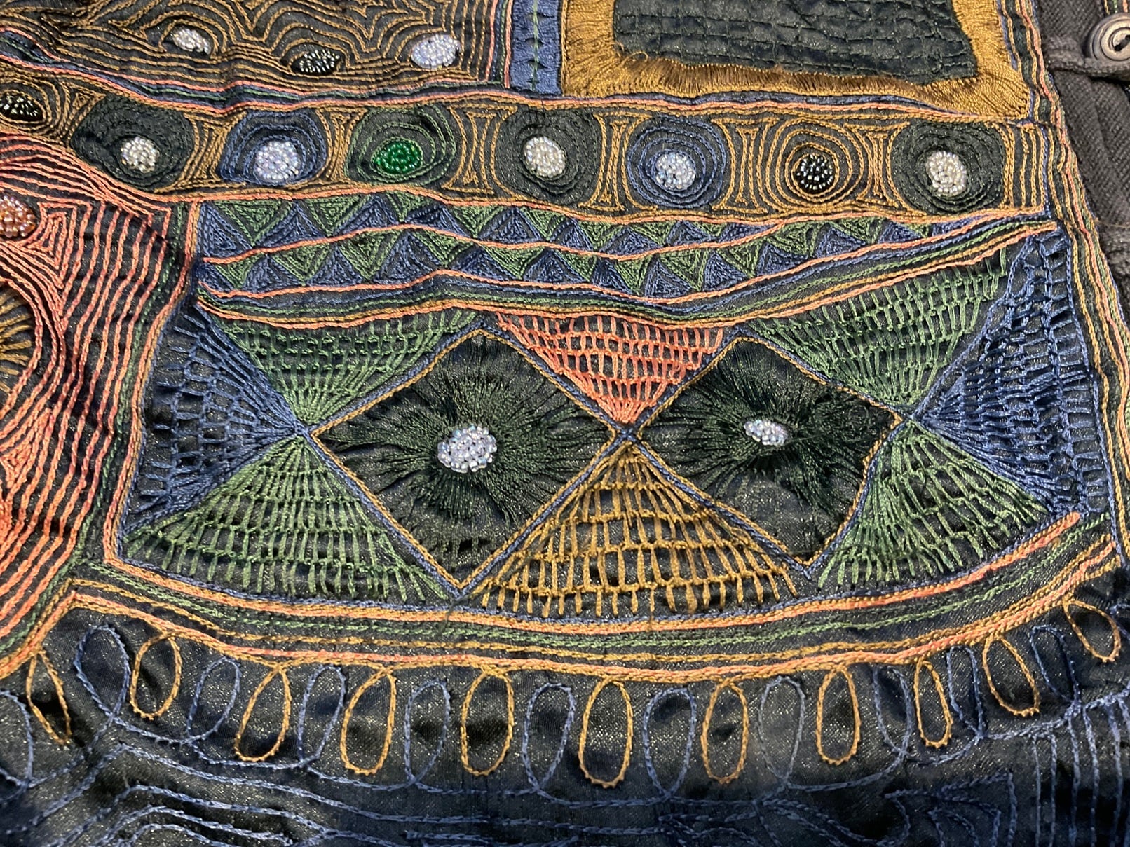 刺繍面は様々なステッチの手刺繍とビーズ刺繍です。