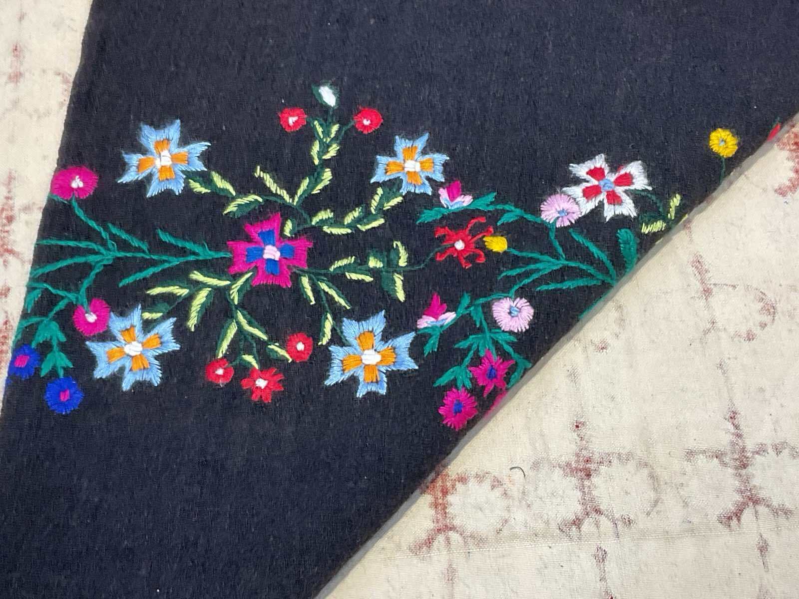 手刺繍手織りウールショールB260004