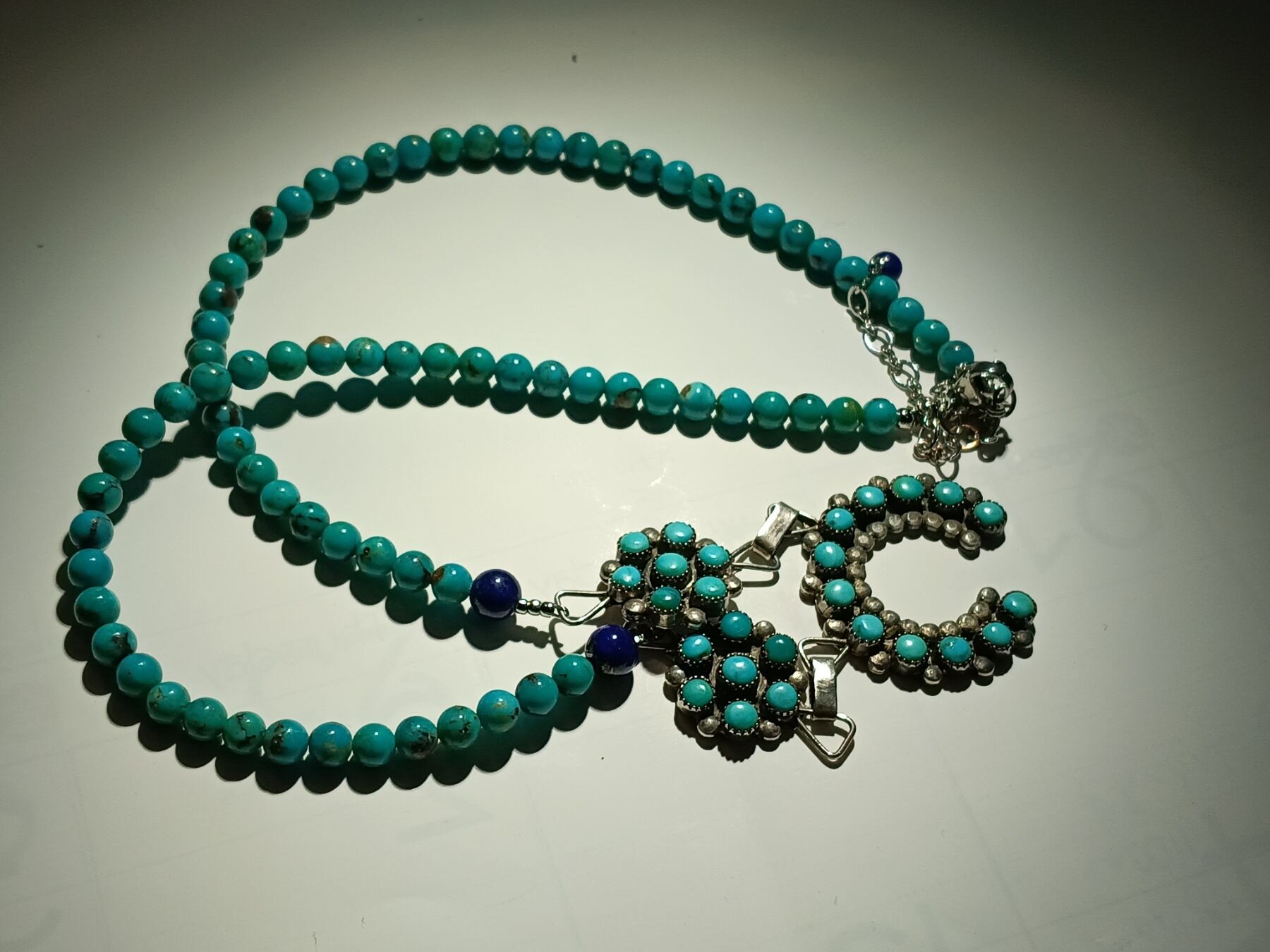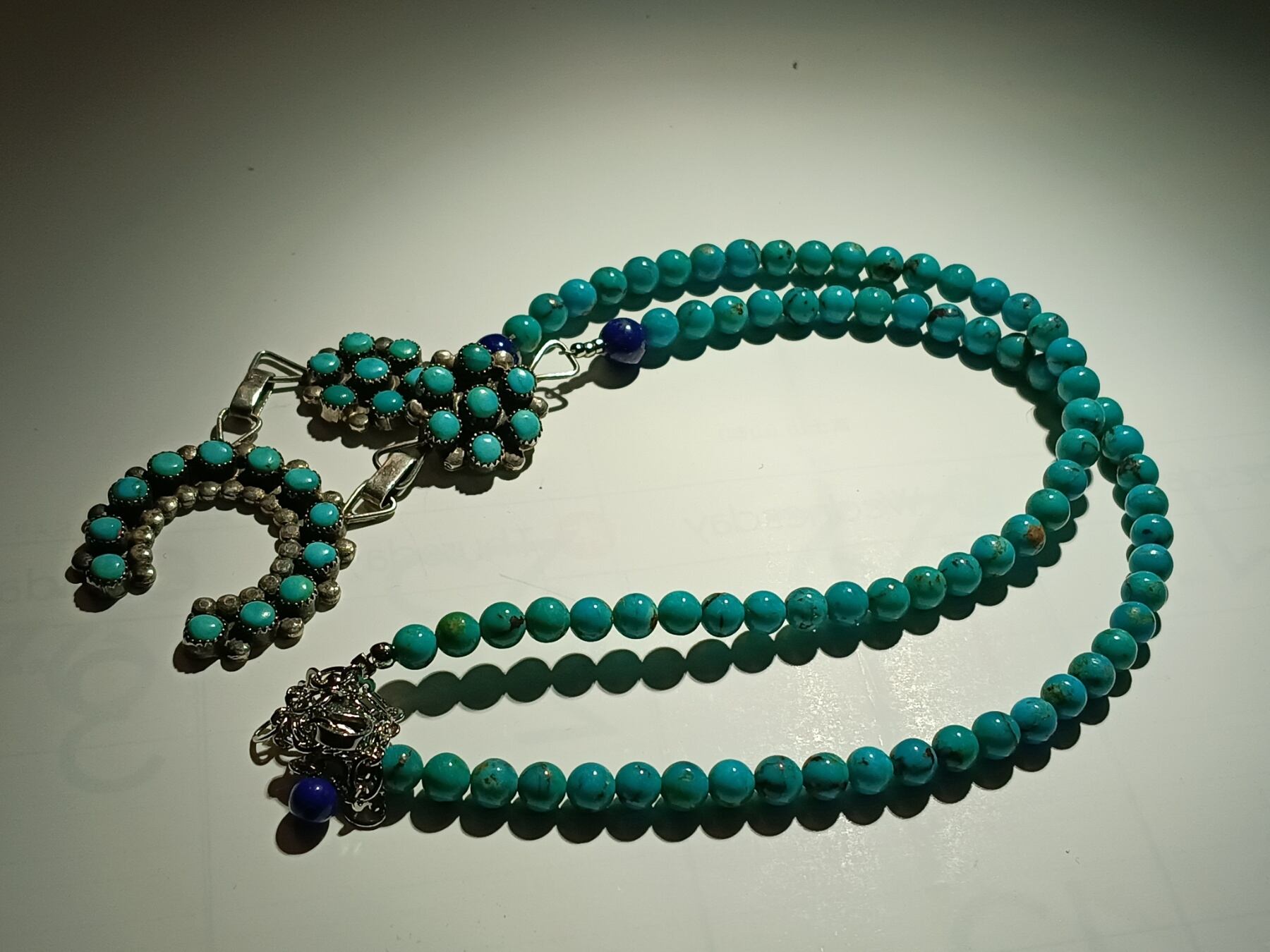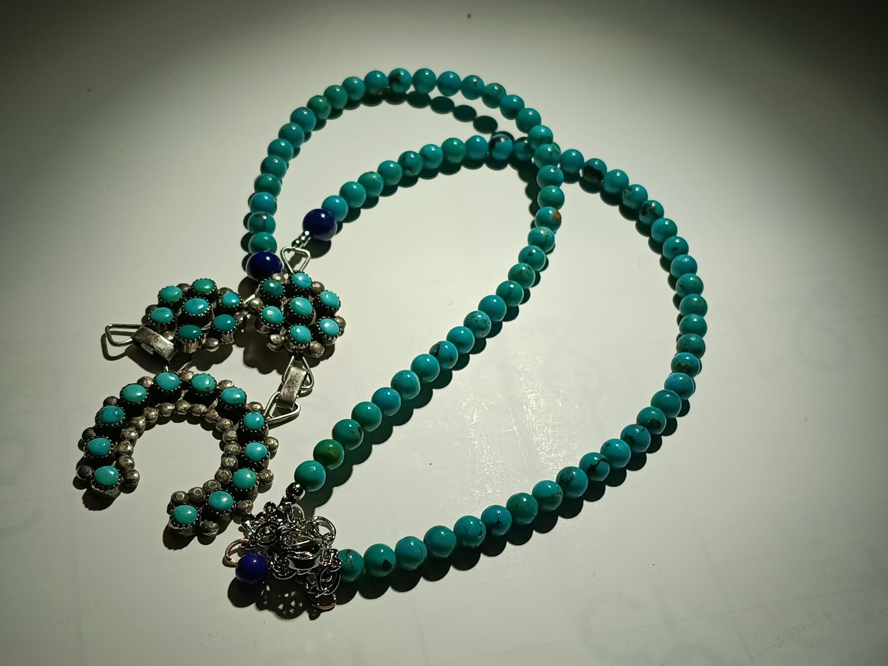 ターコイズ6mm玉ビーズ+ペンダントヘッド(ペルシャターコイズ)