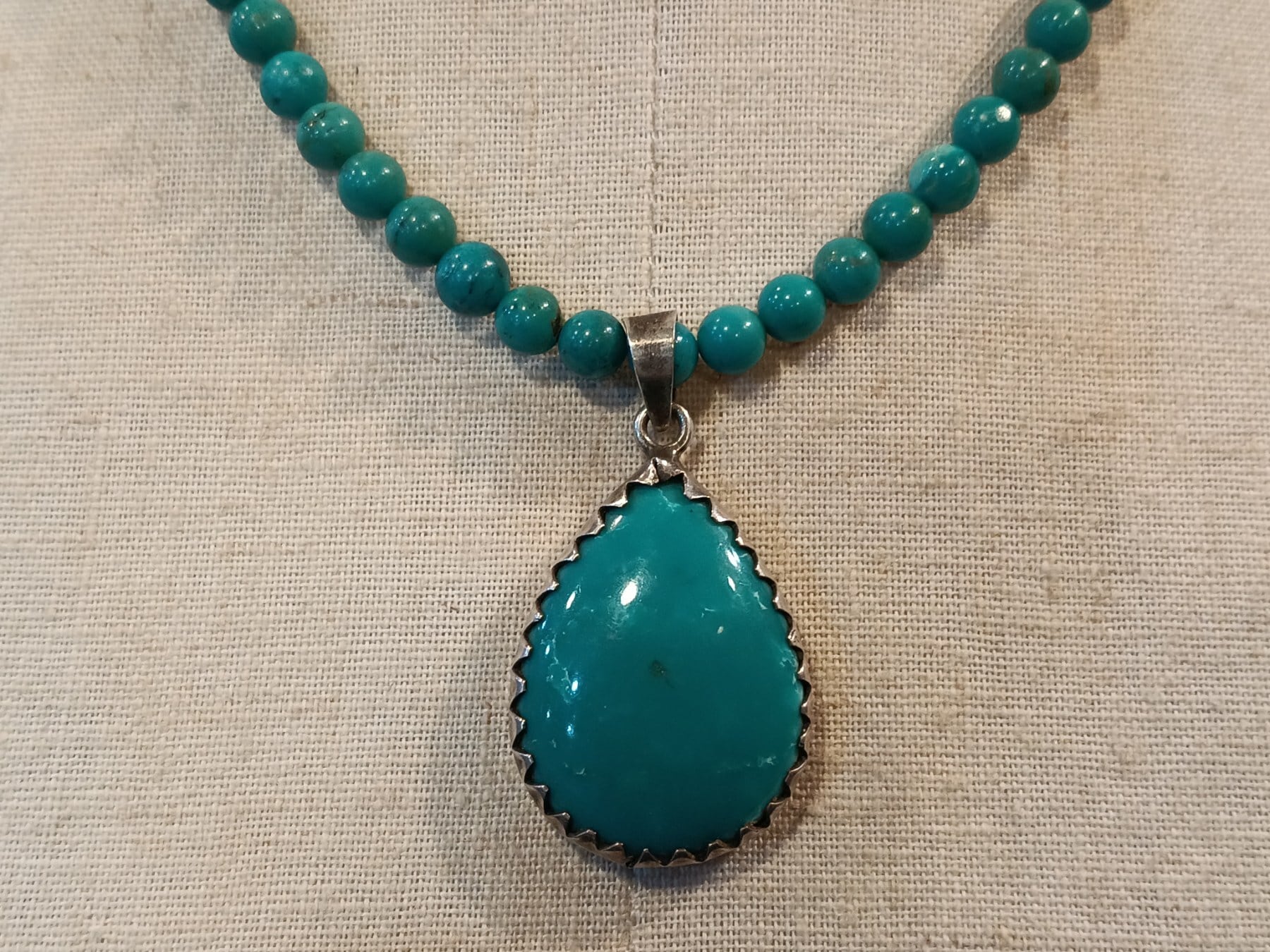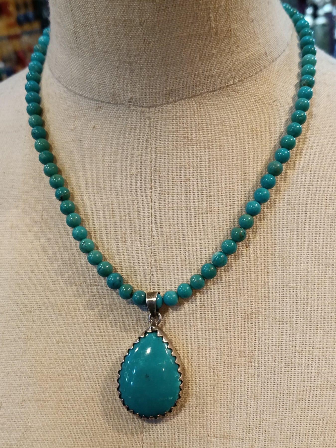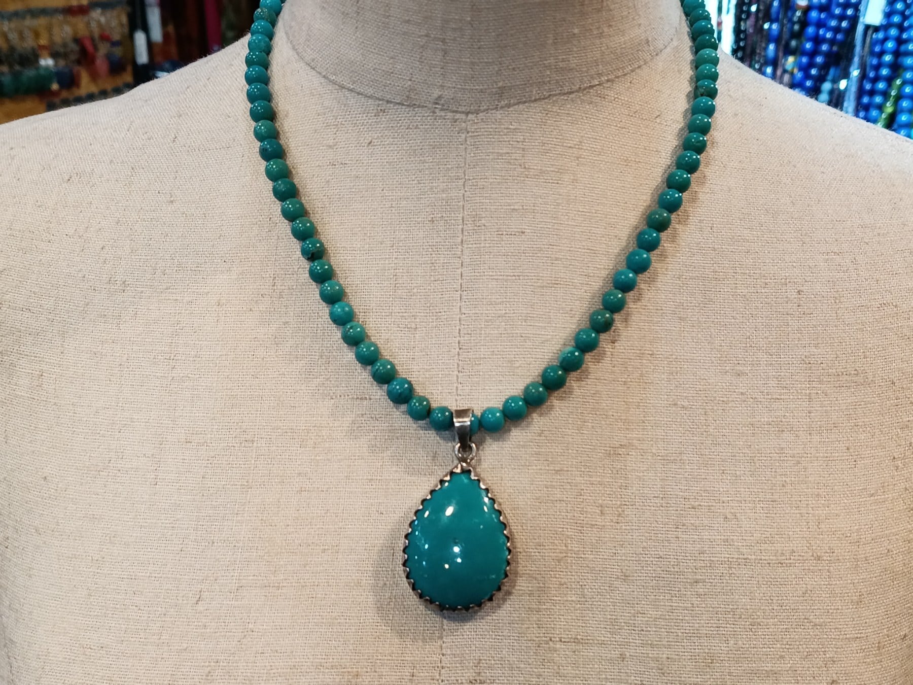 ターコイズ 6mm玉ビーズネックレス 48cm