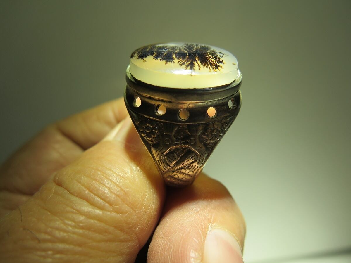 ペルシャ シャジャリ(デンドリティック)アゲートスターリングシルバーリング B2019247