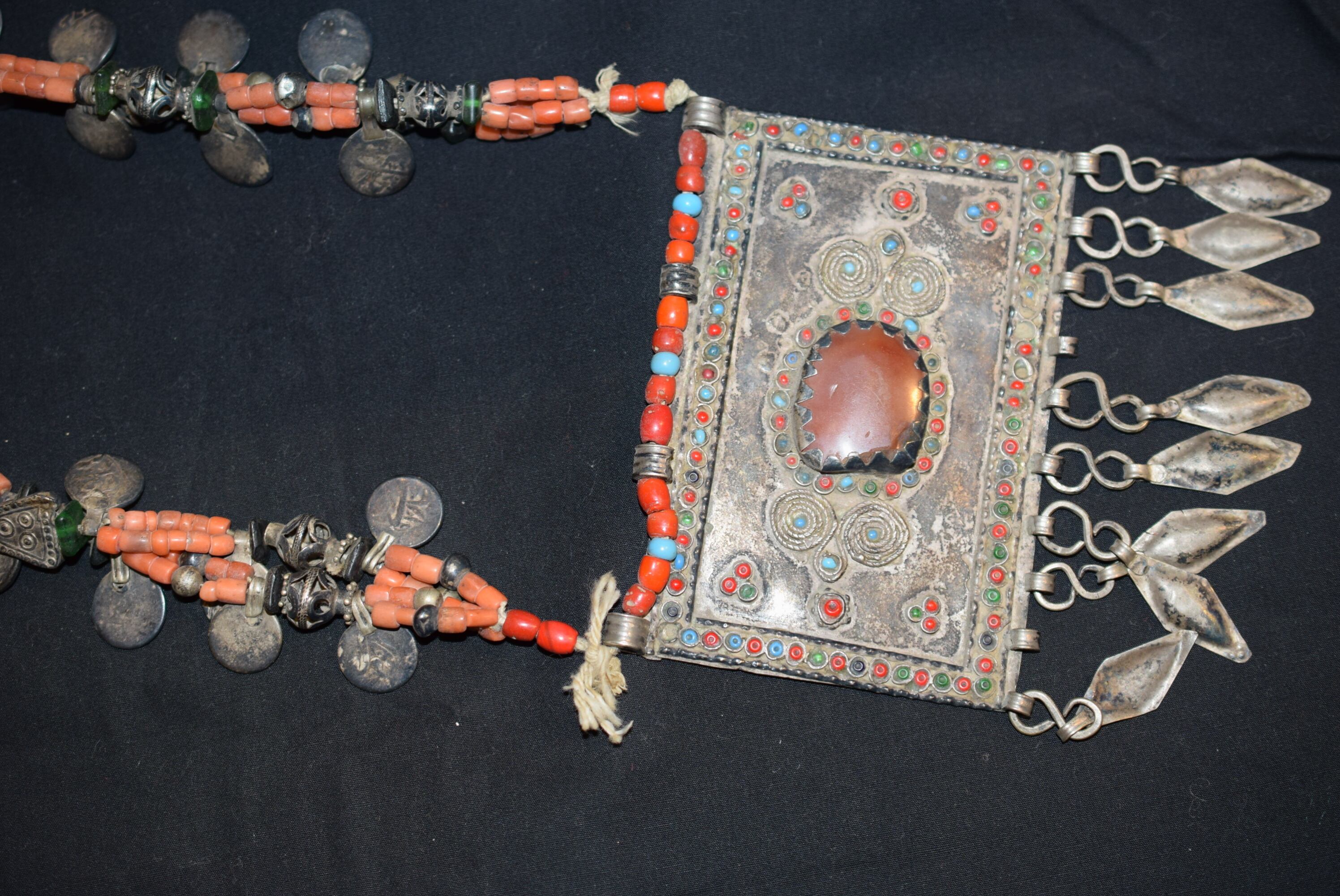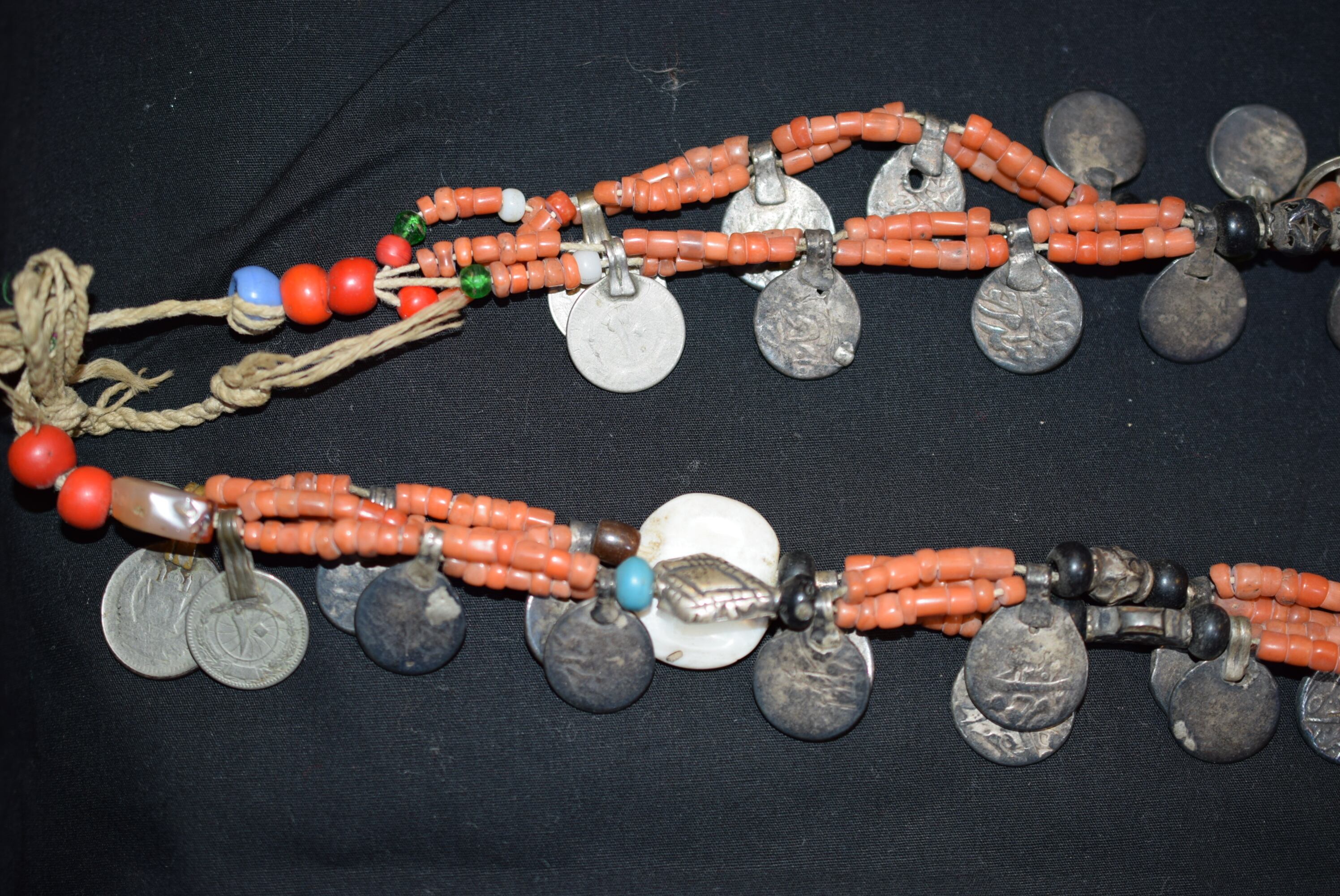 紐で被るタイプです。ビーズ部分は片側40cmです。