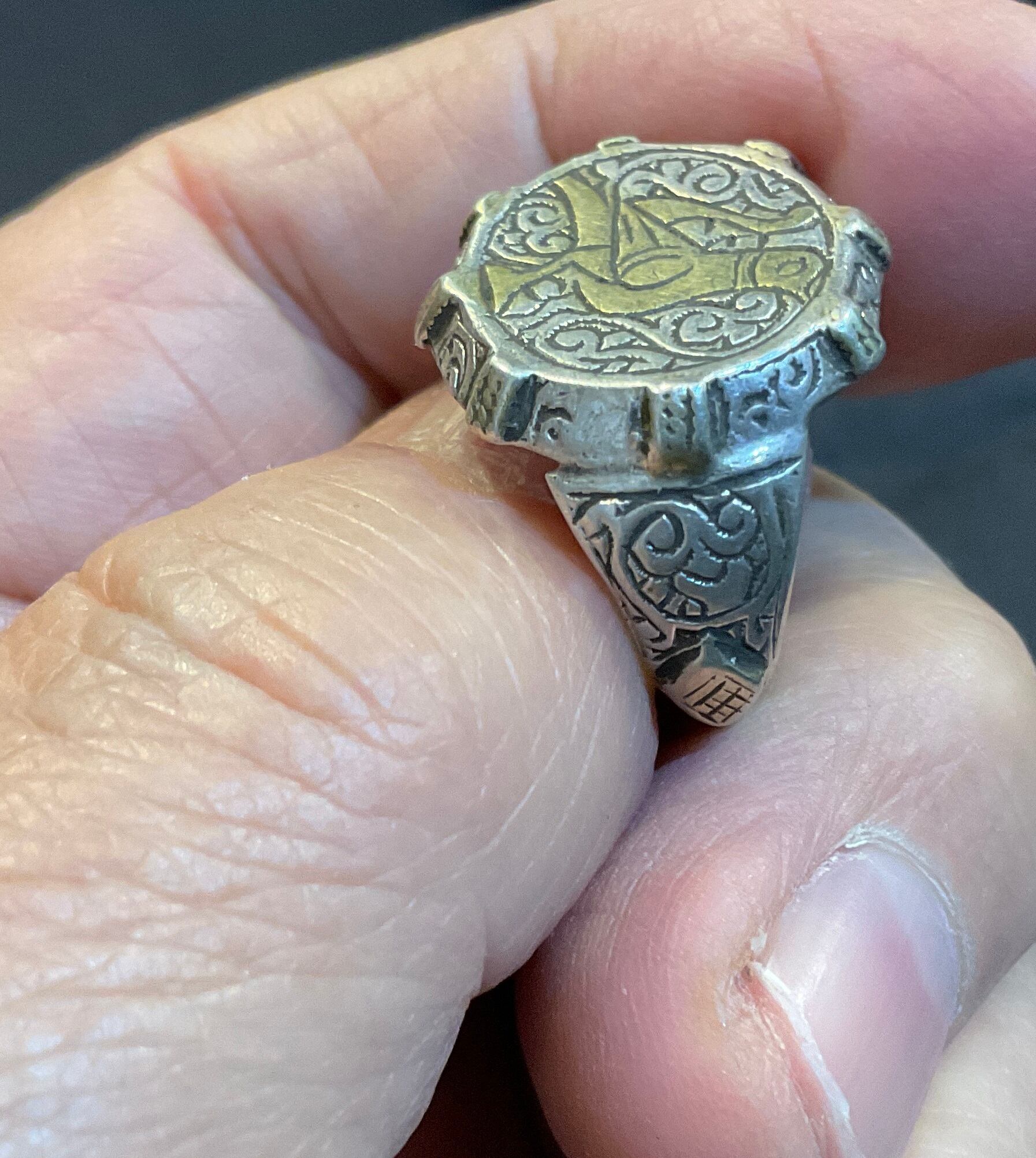 表面は鳩が金色に、裏側にも鳩が彫られています。
