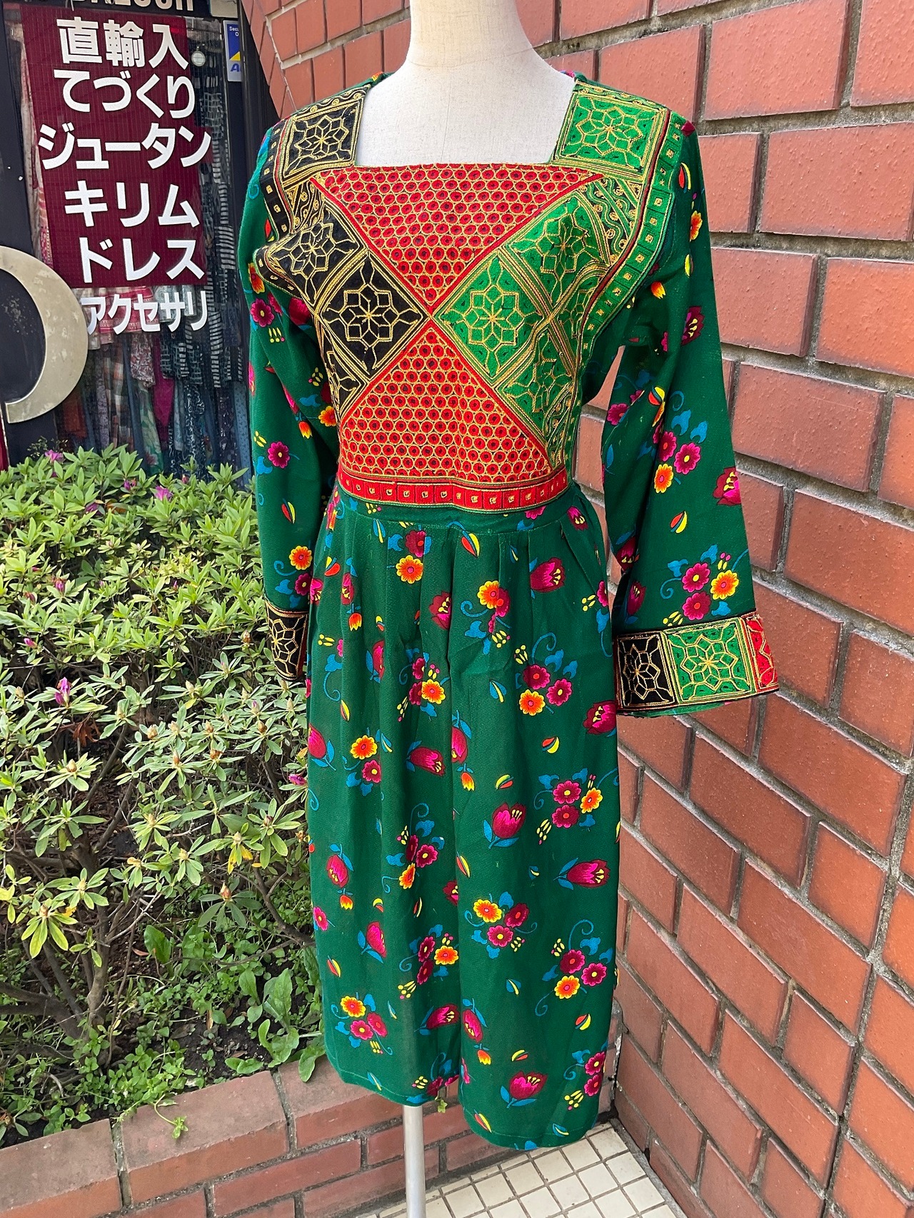前と袖口は機械刺繍で、珍しい華やかなデザインです。
