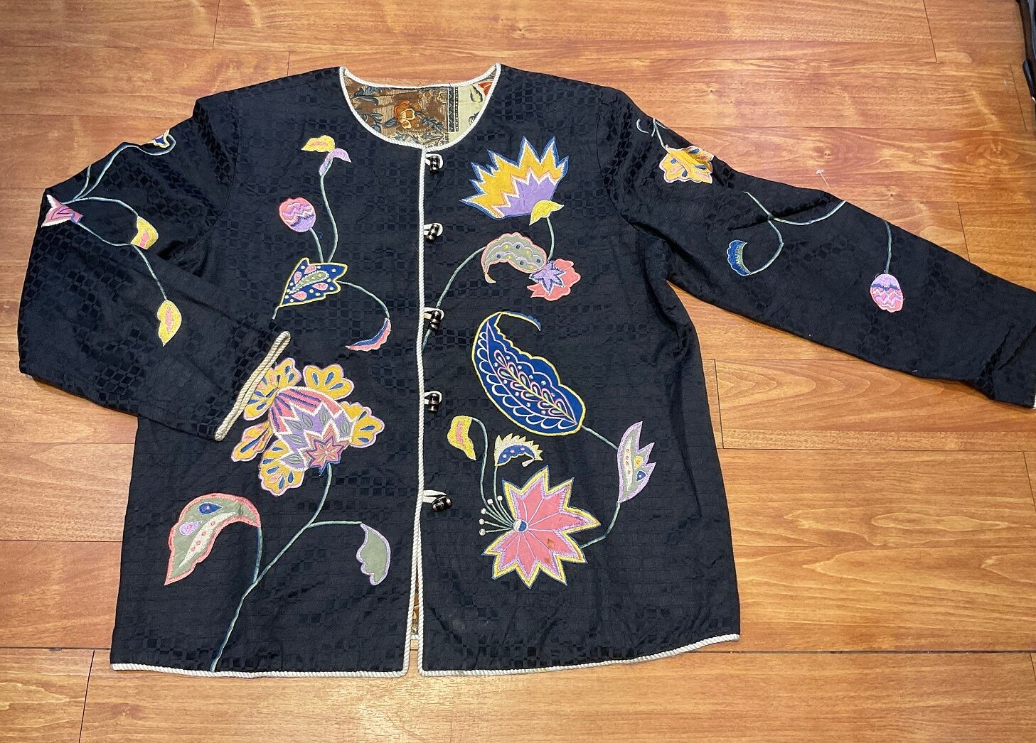 裏はコットンのプリントパッチワークで、リバーシブルにもなるように縫われています。