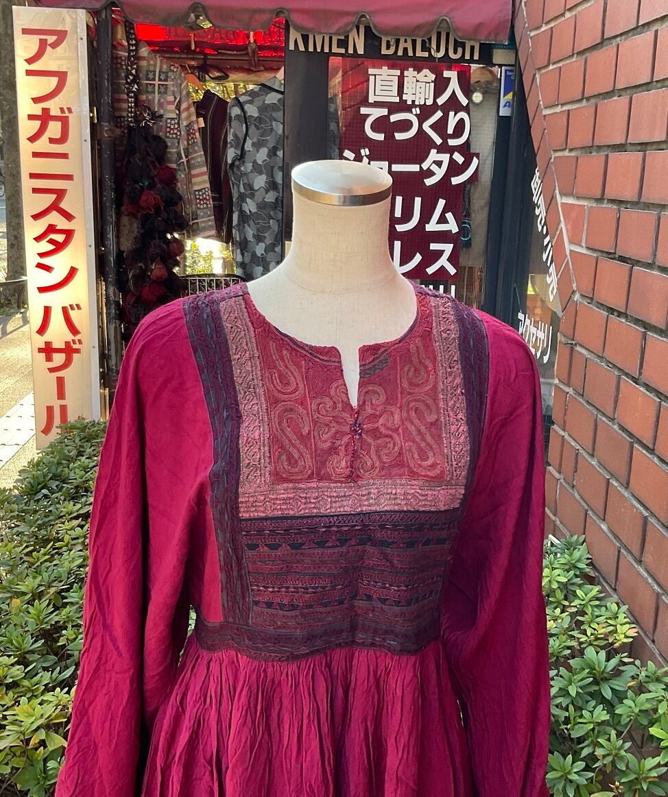 アフガン手刺繍ヴィンテージコットン ドレスB2300484