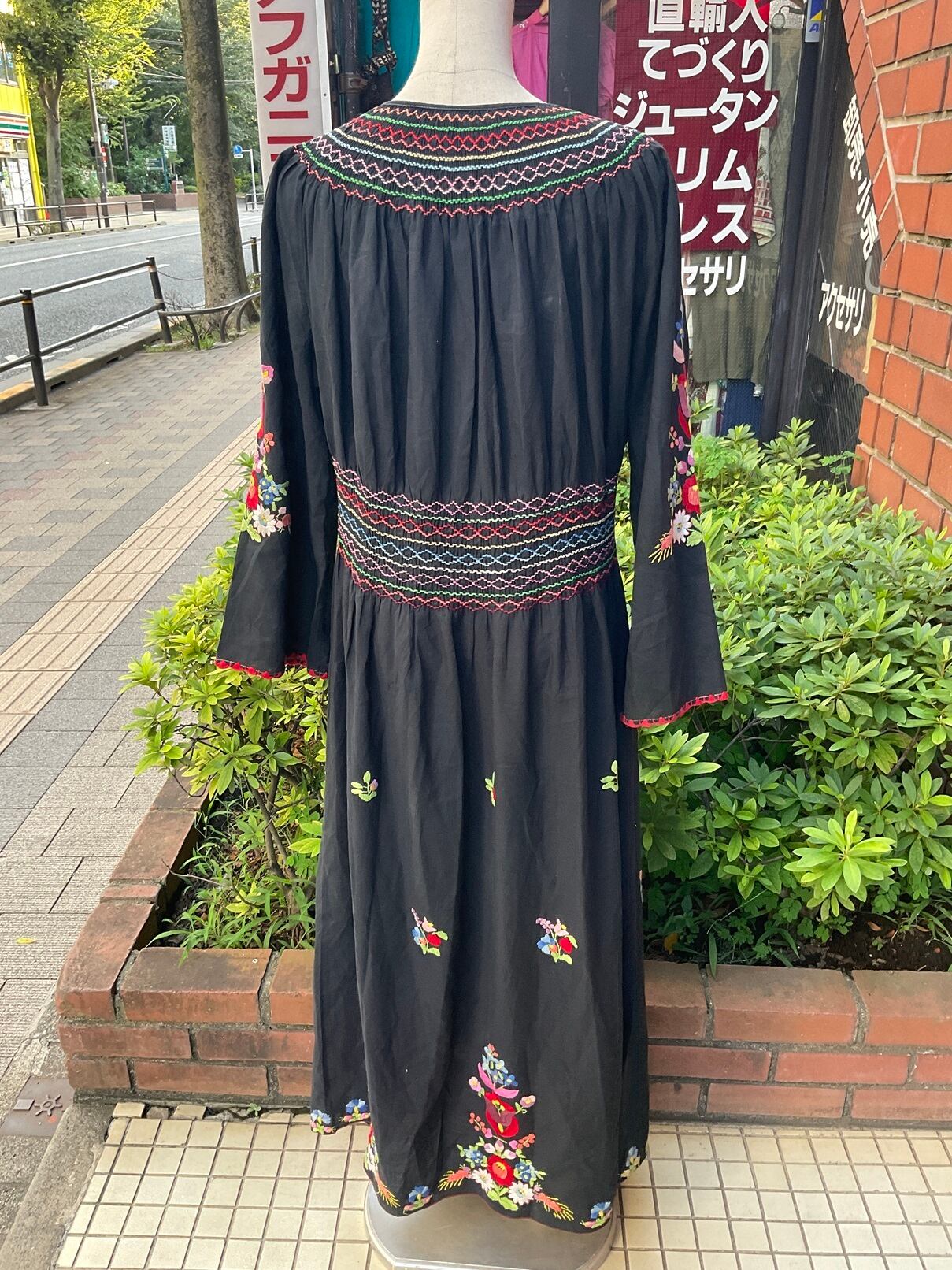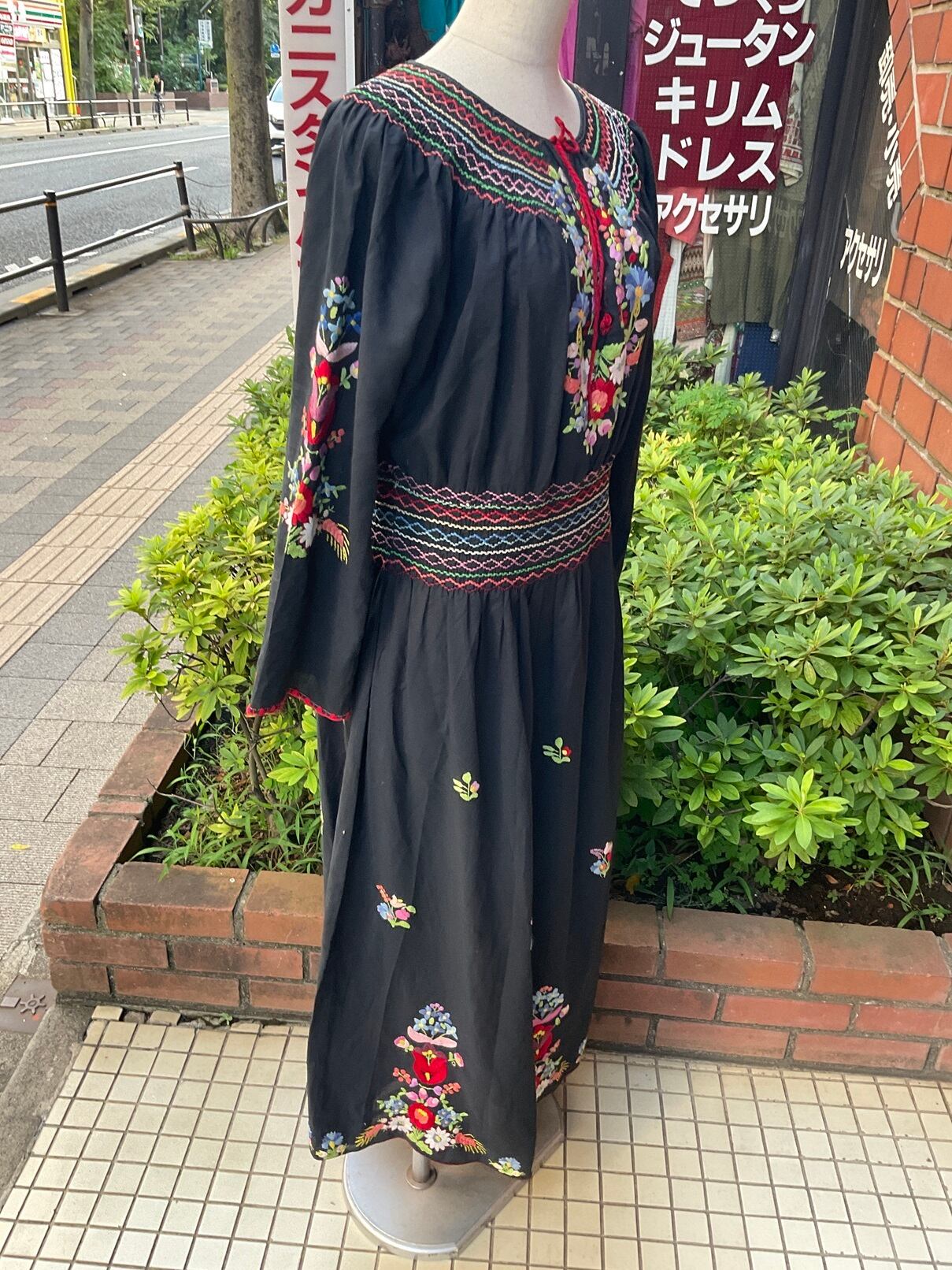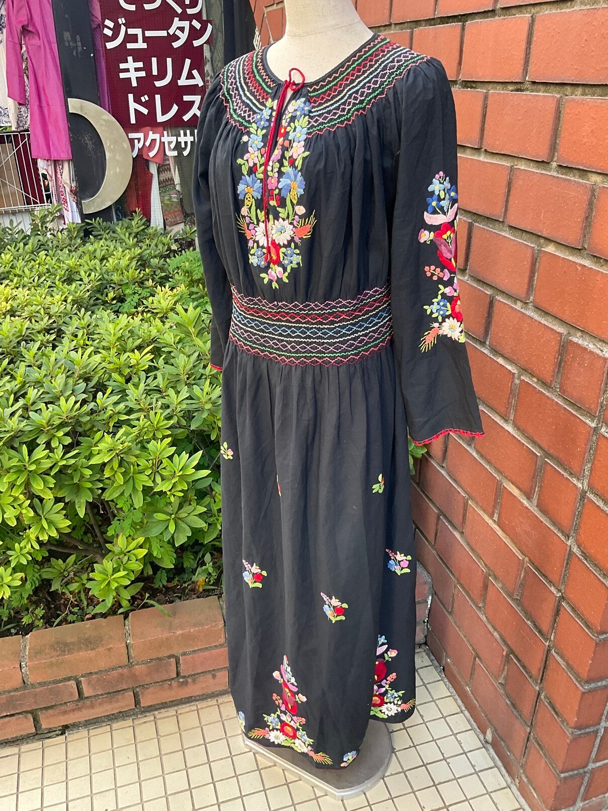 首元とウエストのカラフルなスモッキングがかわいいです。